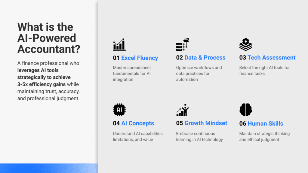 A central theme of the session was that becoming an “AI-powered accountant” is not about adopting tools blindly—it’s about building capability across a structured framework.